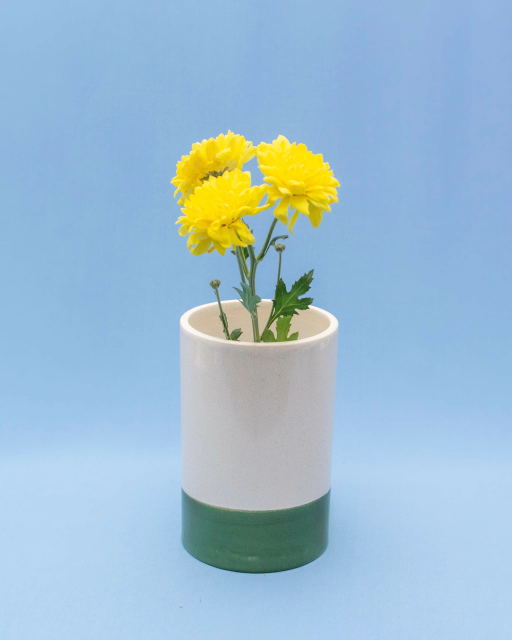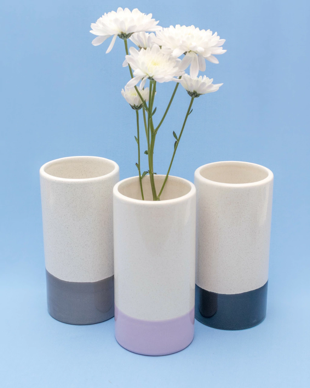 El Florero Balvanera es una hermosura. Perfecto para darle vida a tu casa con tus flores favoritas. Con una base jaspeada en un tono natural, salpicada de micropuntos grises. Además, podés elegir un color de nuestra paleta de colores para darle tu toque personal a la base.